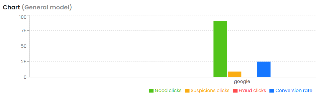 - Good clicks — legitimate, high-quality traffic (green)